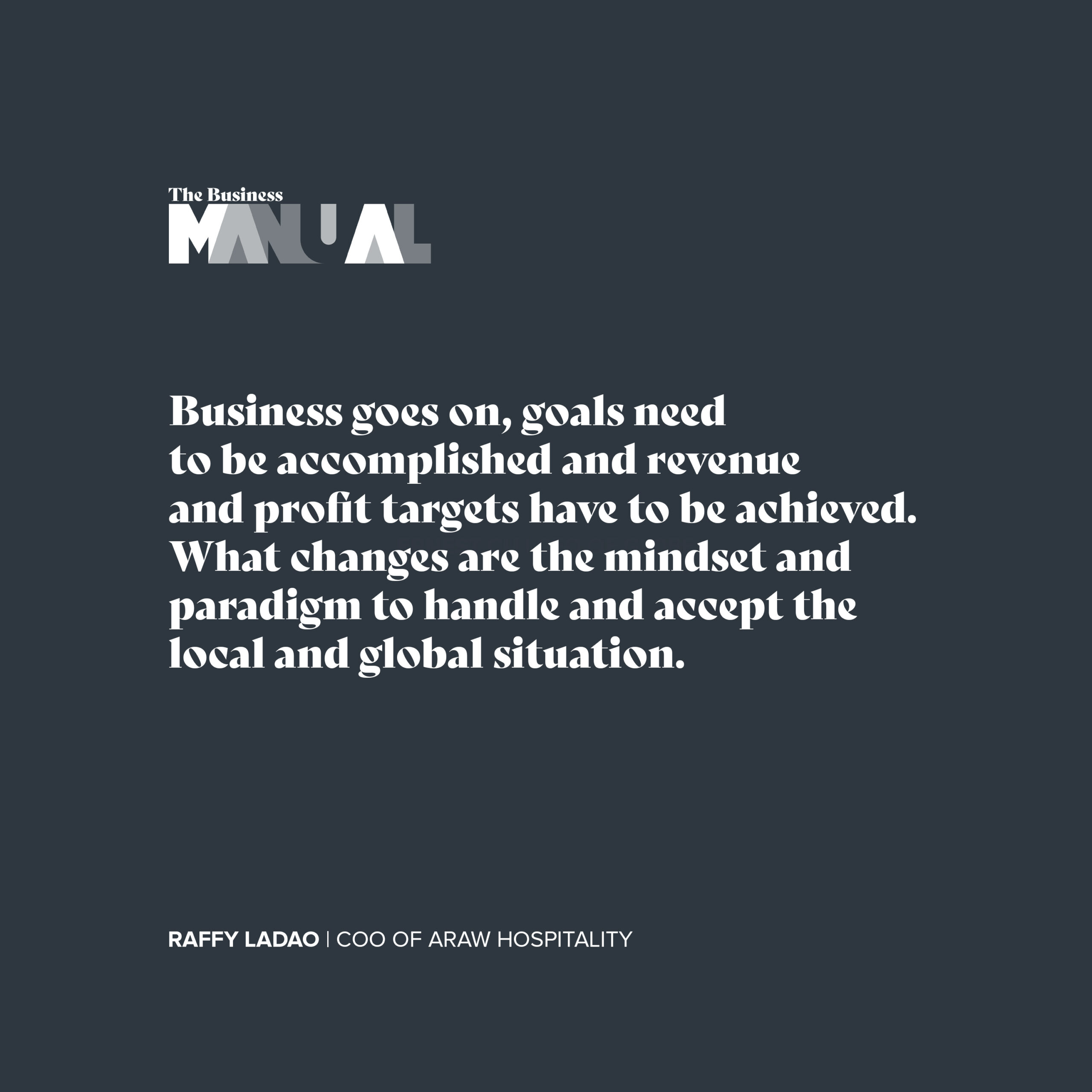 Here’s one such tale of a man who kept going despite the hardships the hospitality industry faced. Araw Hospitality COO Raffy Ladao shares his reflections and what he has learned, as he strives to keep business going in the middle of a pandemic.