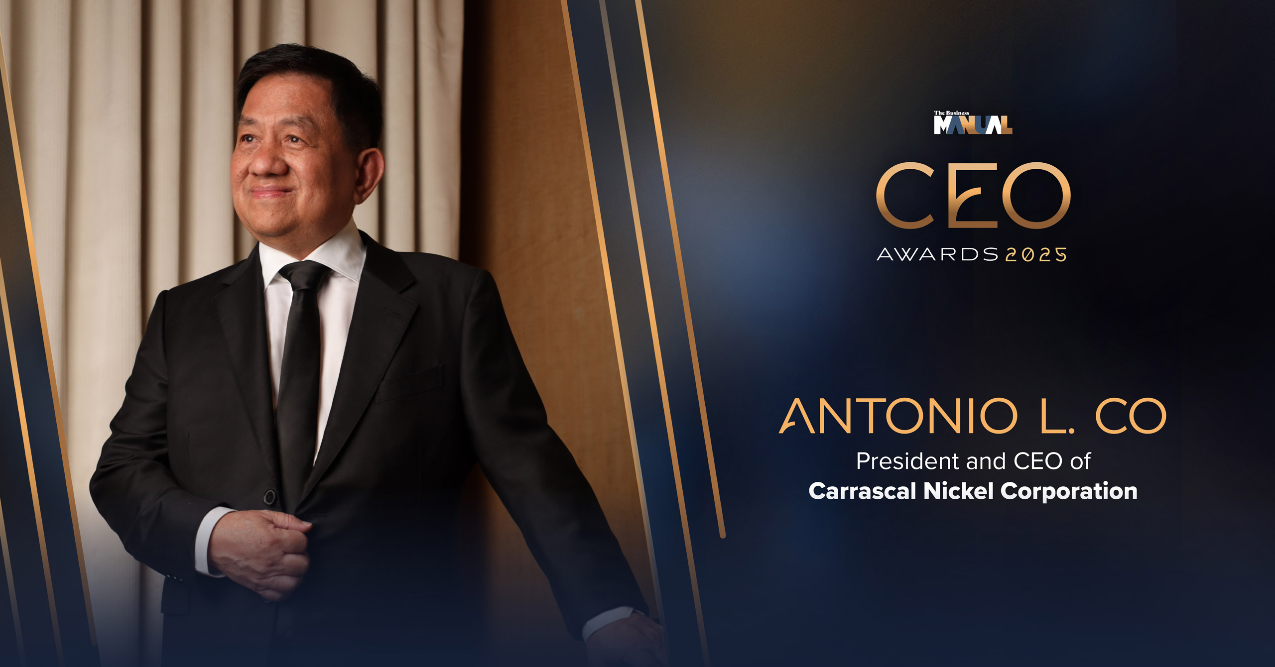 The Business Manual CEO Awards 2025 gives recognition to the leadership of Antonio Co, President of the Philippine Nickel Industry Association.