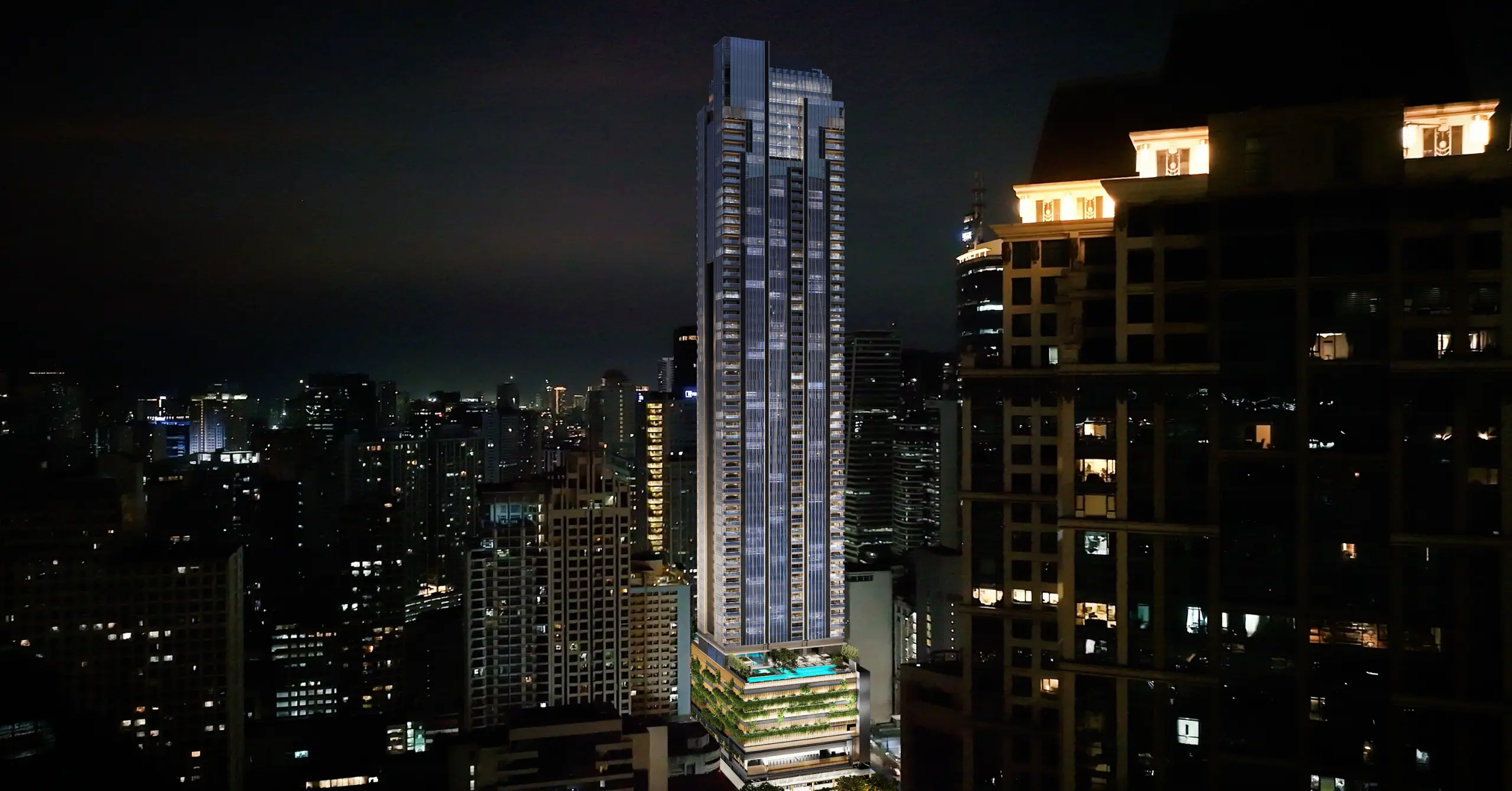 Sixty-five stories high, the development will house 388 residences. These range from 72-square-meter suites to expansive 402-square-meter four-bedroom homes. Over half a hectare is devoted to club-like amenities, which include multiple pools, private dining rooms, a wine lounge, wellness and spa facilities, a cinema room, and a sky garden.