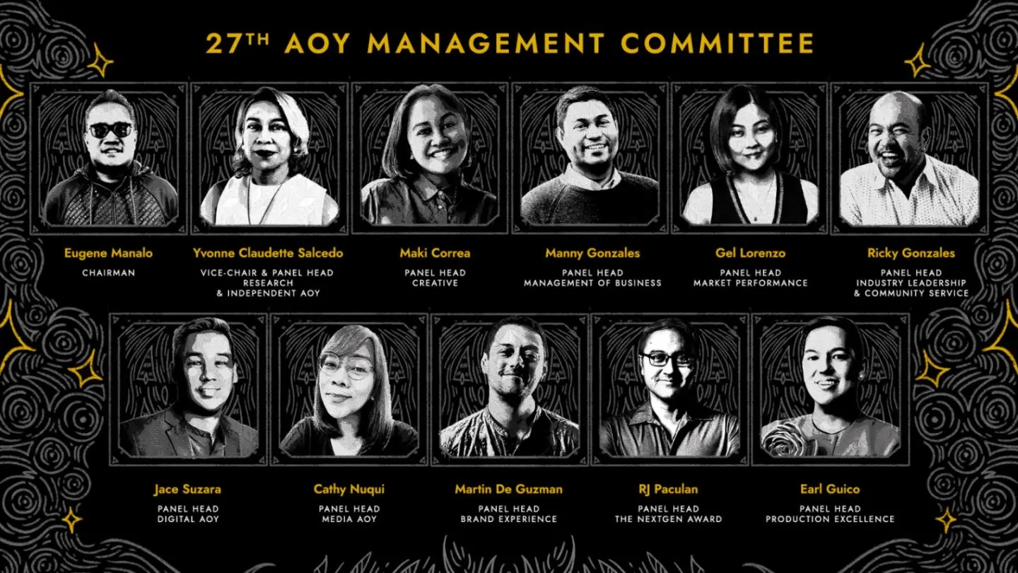 With Manalo at the helm, the 27th AOY is the first time that a media agency person will lead its management committee. The management committee is composed of distinguished and respected industry leaders who bring their unique vision and expertise to this year’s celebration.