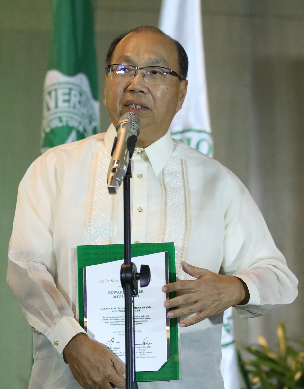 According to the De La Salle Alumni Association (DLSAA), the One La Salle Night of Excellence “recognizes and honors alumni who have achieved distinction and unusual positive recognition in their chosen fields, professions, or public service, and who have demonstrated outstanding achievement thereby serving as role models on a community, provincial, national, or international level.”